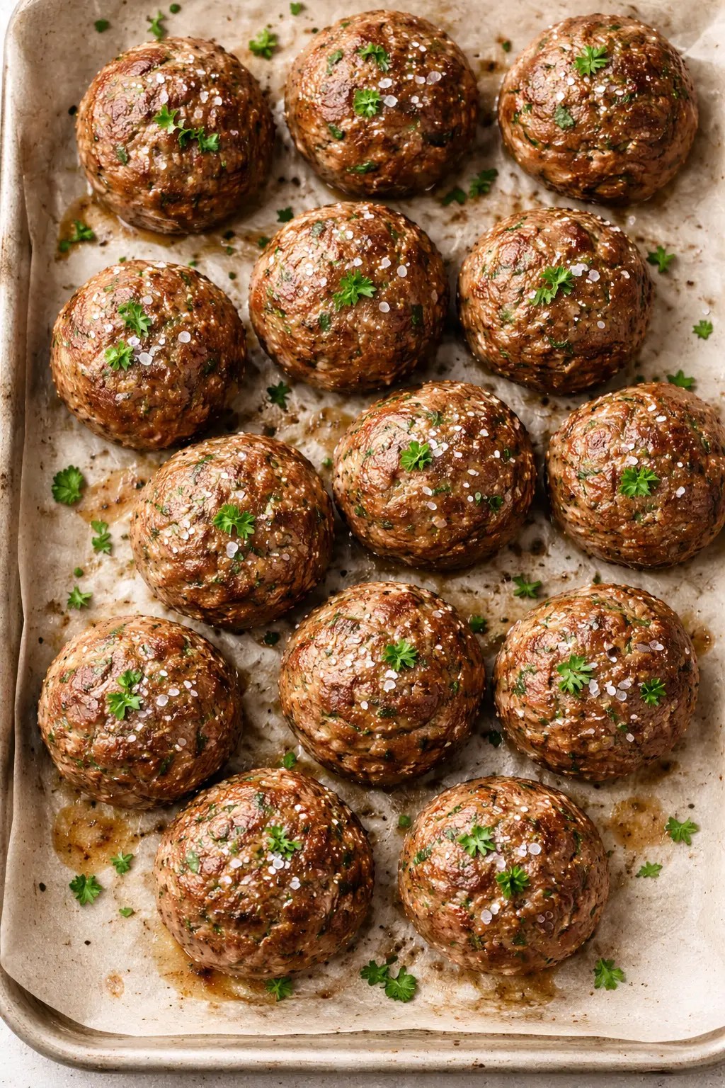 Using ground beef gives these meatballs a rich, savory depth that pairs beautifully with tomato sauce, creamy sauces, or even served plain with a sprinkle of sea salt straight from the oven.