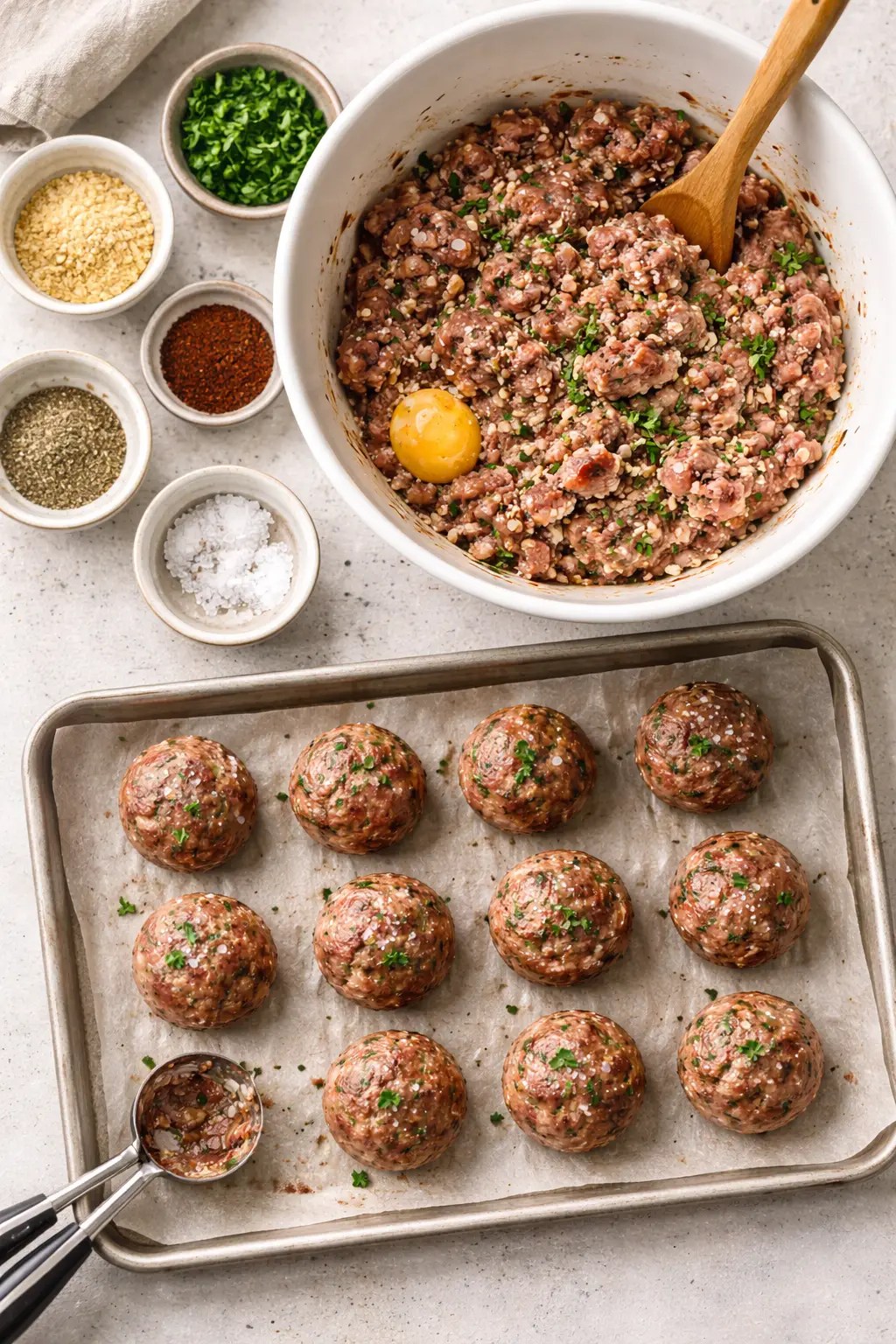 Use a cookie scoop for consistency. Even-sized meatballs cook evenly and look more professional.